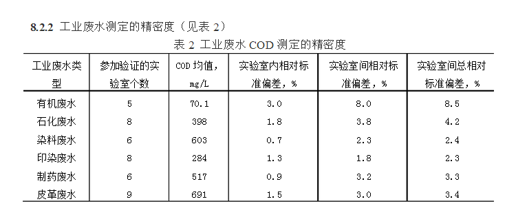 当氯离子含量超过1000mg/L时,COD的**低允许值为250mg/L,低于此值结果的准确度就不可靠。
