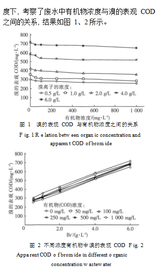 为了进一步探索溴的表观 COD 与有机物浓度之间的关系, 在不同的溴离子浓度和不同有机物浓 |