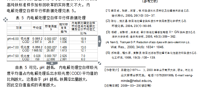 研究较多〔2-4〕,并且大多在内电解前和混凝后分别取 |