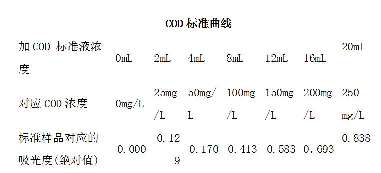 在440nm±20 nm 波长处测定时,水样COD 的计算: