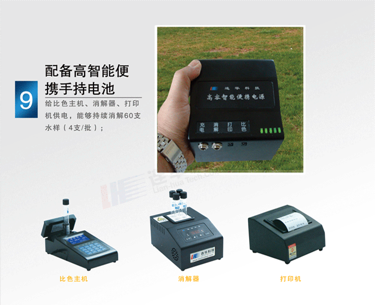 (05) 可显示电量的大容量高能锂动力电池,满足大批量的水样测定;