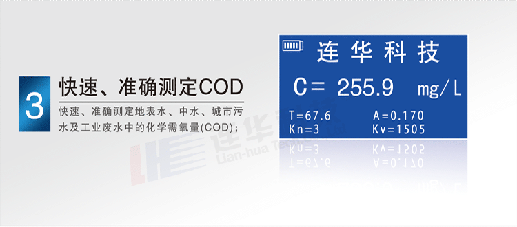 (01) 能准确测定地表水、中水、城市污水、工业废水中化学需氧量(COD),浓度直读;