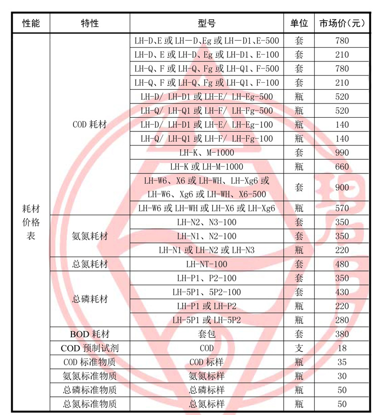 连华科技试剂耗材产品价格表